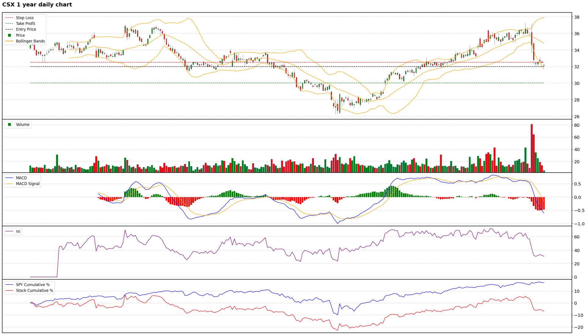 $CSX ( ▼ 1.55% ) 1 Year Daily Chart
