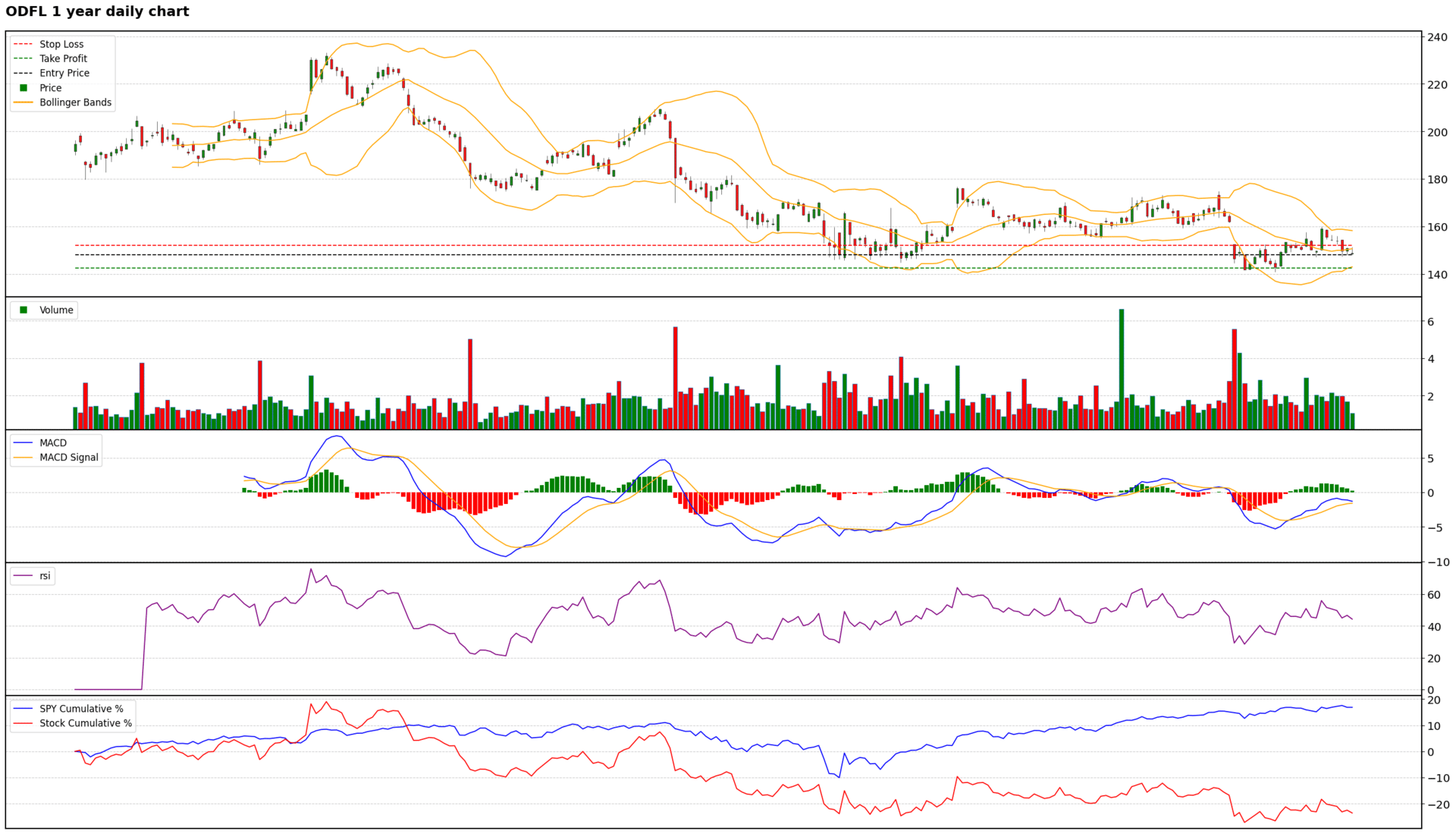 $ODFL ( ▼ 4.93% ) 1 Year Daily Chart