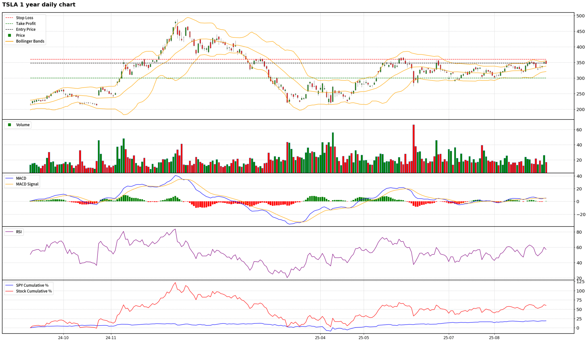 $TSLA ( ▼ 5.06% ) 1 Year Daily Chart