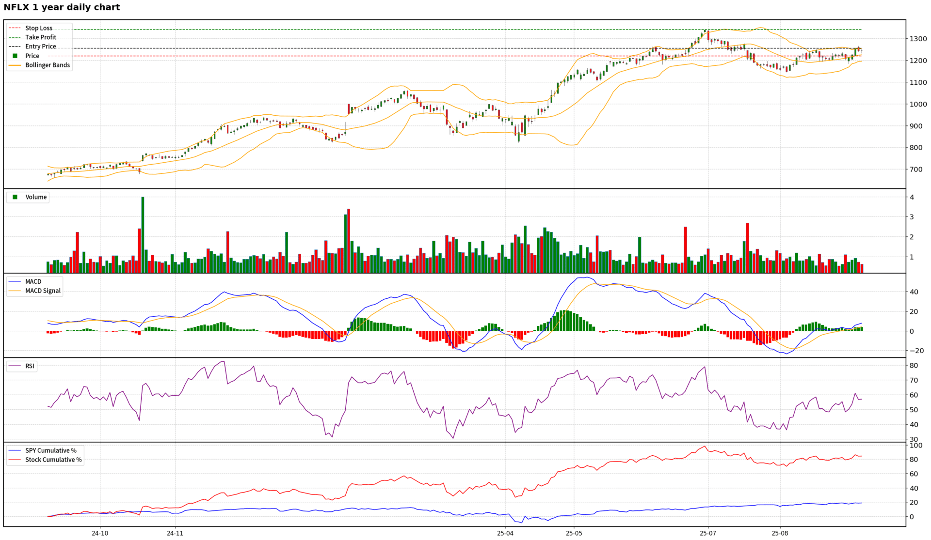Netflix presents a compelling long-term growth narrative, underpinned by strong financial performance, successful strategic initiatives like the ad-supported tier, and a robust content pipeline that continues to drive subscriber engagement. Management's high confidence and raised guidance, coupled with overwhelmingly positive analyst sentiment, reinforce its market leadership. However, the stock is significantly overvalued, trading at premium multiples that largely price in future growth, posing a risk of P/E compression. Technically, $NFLX ( ▼ 0.89% ) is at a critical juncture, consolidating near key resistance levels with a potential double top formation. While numerous catalysts exist, intensifying competition and regulatory scrutiny are notable headwinds. Therefore, a tactical long position is recommended only upon a confirmed breakthrough above the 1255.00 resistance, with disciplined risk management essential to navigate the stretched valuation and potential for increased volatility.