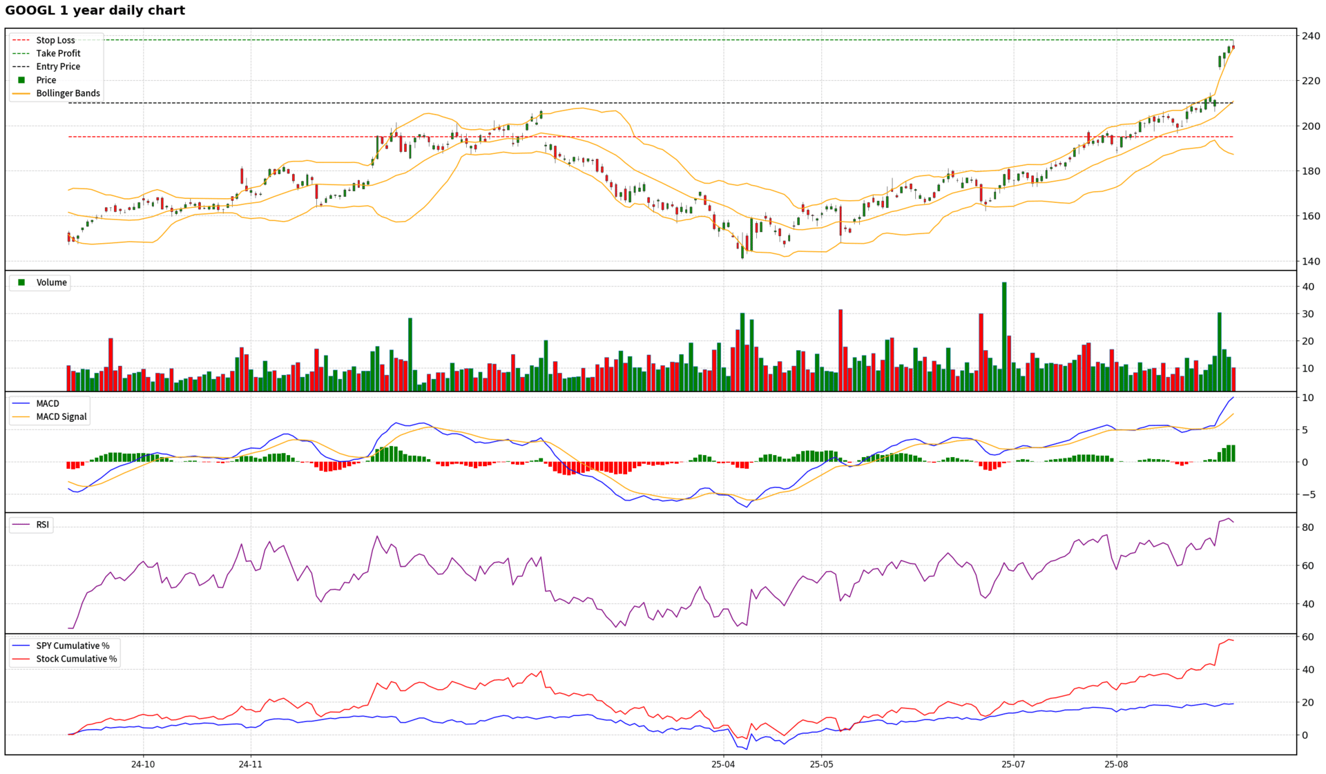 Alphabet presents a compelling long-term investment opportunity, driven by its dominant position in AI and the explosive growth of Google Cloud. The company's Q2 2025 results showcased robust revenue growth across its core segments, underpinned by significant strategic investments in AI infrastructure. Analyst sentiment is overwhelmingly bullish, viewing the recent favorable antitrust ruling as a major de-risking event that justifies a re-rating of the stock, which is currently perceived as undervalued relative to its growth and peers. While the company faces challenges from accelerating depreciation, specific H2 advertising headwinds, and intensifying regulatory scrutiny with substantial fines, its strong balance sheet and commitment to innovation provide resilience. Technically, $GOOGL ( ▼ 2.05% ) is in a strong uptrend with significant momentum, but overbought indicators suggest a near-term pullback is likely. Therefore, a tactical long entry on a retracement to key support levels is recommended, offering an attractive risk/reward profile for investors looking to capitalize on its long-term growth trajectory.